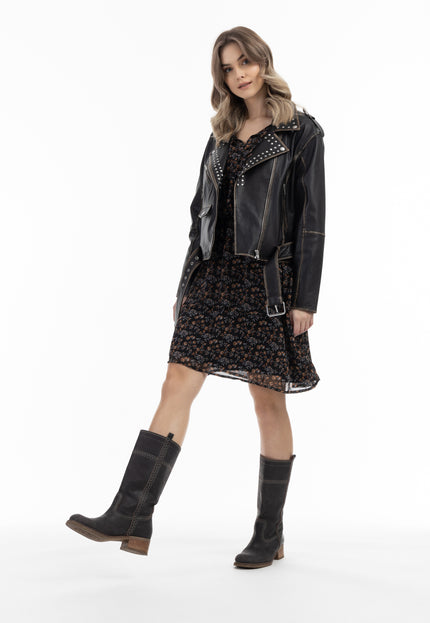 DreiMaster Vintage Women's Biker Style Leather Jacket